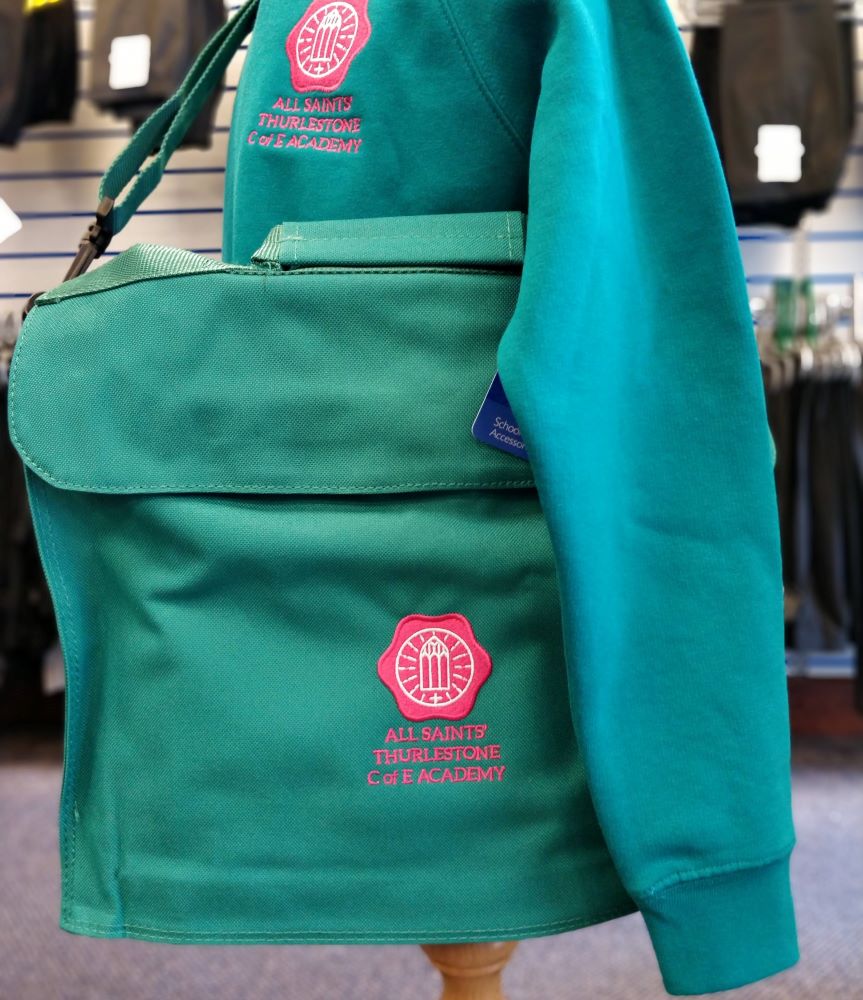 All-rounder junior school bag with removable shoulder strap. Embroidered for All Saints’ Thurlestone.
