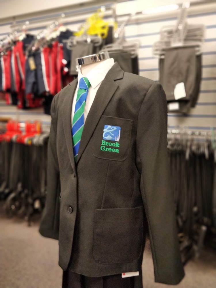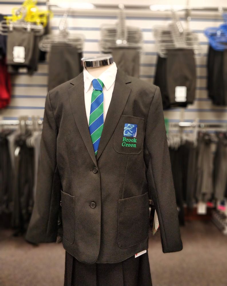 Classic three-pocket girl’s blazer. Embroidered for Brook Green.