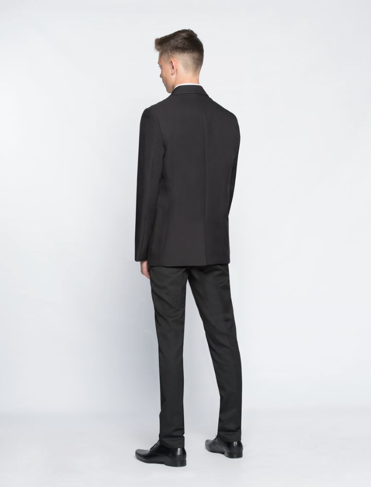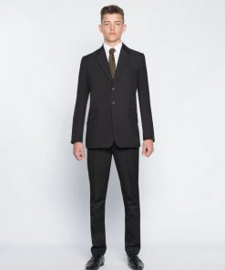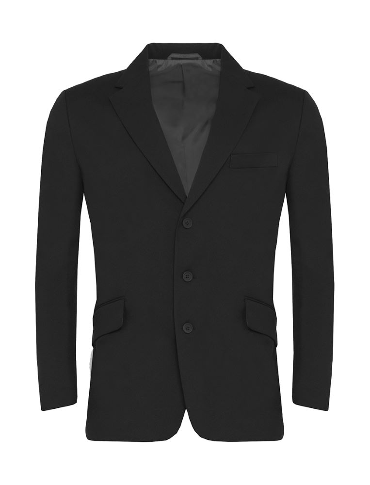 Boy’s 3 buttoned jacket with back vent and jetted pockets embroidered for Devonport High School for Boys. Alternative styles available – please contact us at the shop for details. Material: 100% woven Polyester twill with Maxtech® stain resistance 3 button jacket; contrast colour lining; back vent; jetted pockets with flaps; internal zip pockets for ID and mobile phone; and Maxtech® Plus stain resistance Washing: 40° wash. See Information for Garment Care instructions.