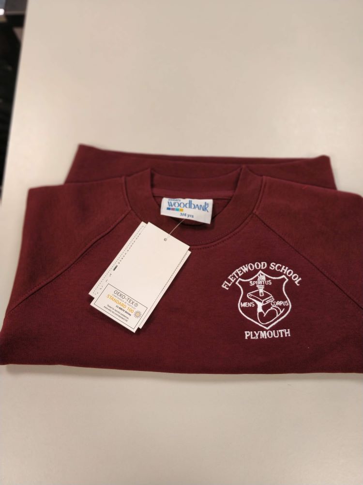 Crew-neck sweatshirt. Embroidered for Fletewood School.
