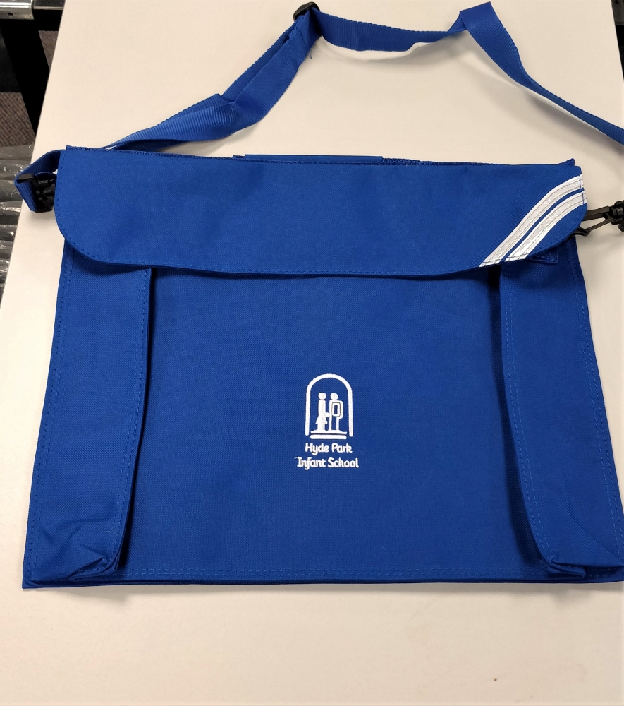 All-rounder junior school bag with removable shoulder strap. Embroidered for Hyde Park Infant School.