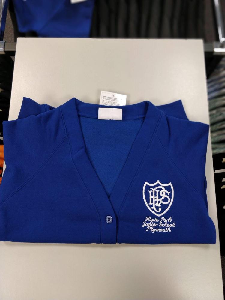Five button sweatshirt cardigan with sewn in pockets. Embroidered for Hyde Park Junior School.