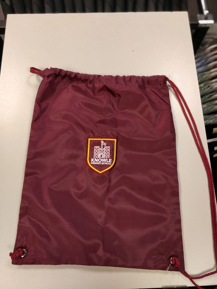 Drawstring PE bag. Ideal for swimwear and muddy kits. Embroidered for Knowle Primary School.