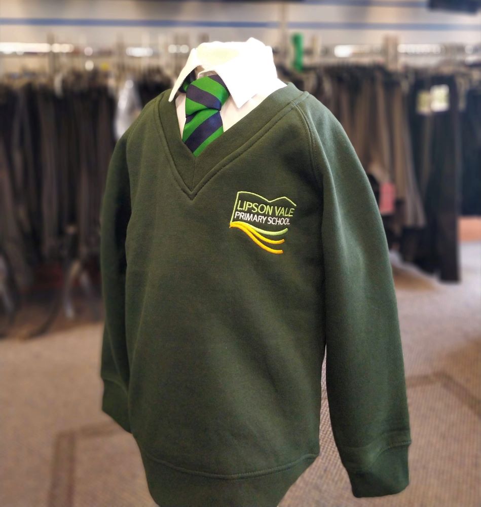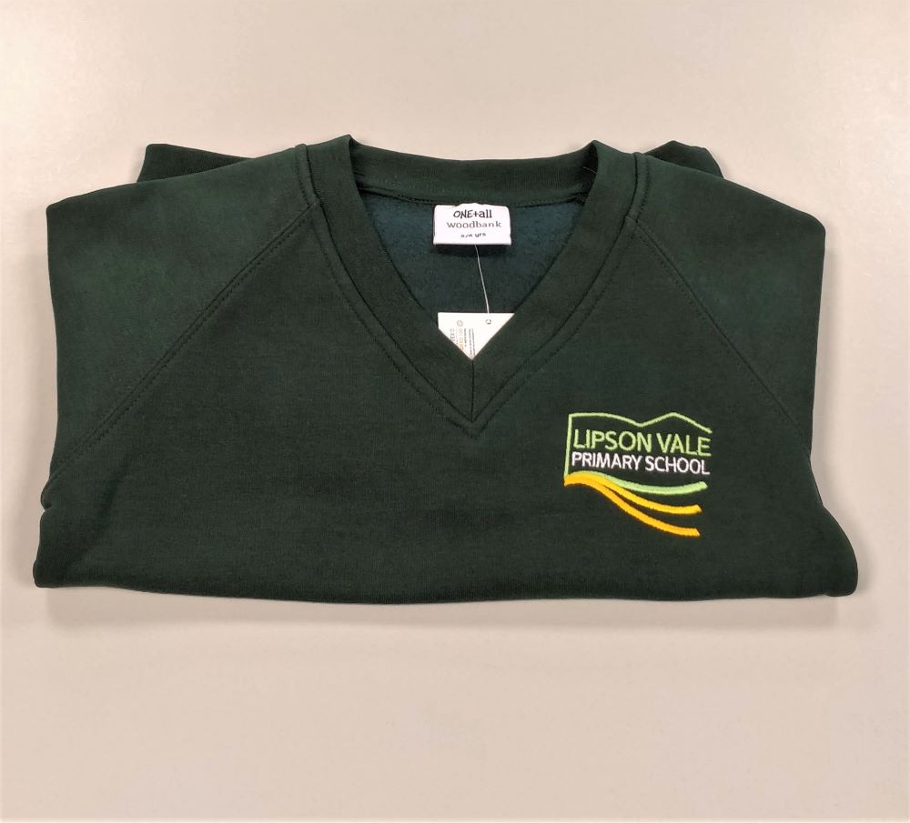 V-neck sweatshirt. Embroidered for Lipson Vale Primary School. Classic raglan sleeve; elasticated cuffs and hem rib for a snug fit; twin-needled neck, cuffs and hem for extra durability. Seam covered back neck (over age 4 years). 50% polyester/50% cotton blend; 300gsm hardwearing fabric for enhanced shape retention; brushed for warmth and softness. Easy-care wash as low as 30 degrees for environmental kindness, cool tumble dry and cool heat ironing. Wash and dry inside out. See Information for Garment Care instructions.