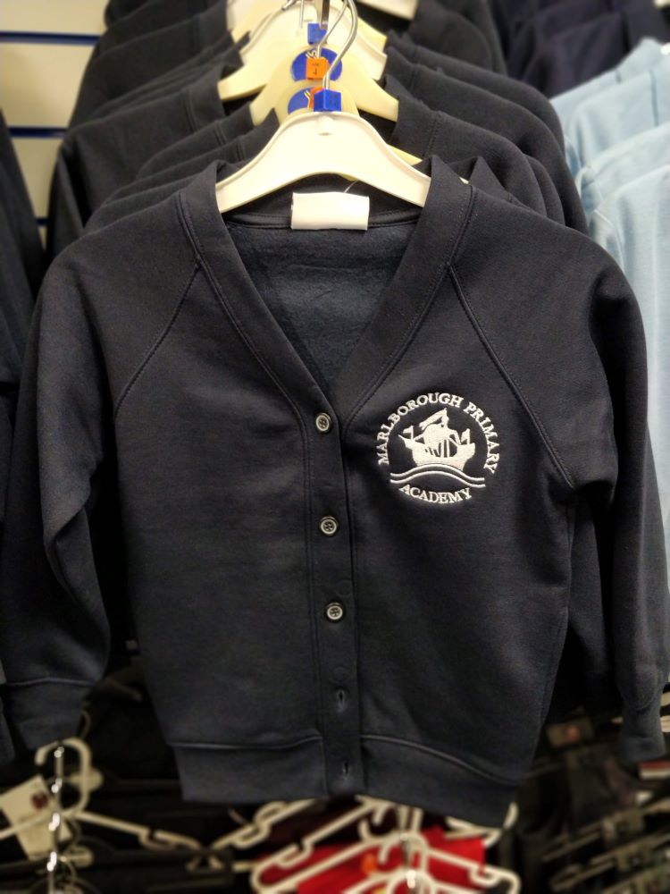 Five button sweatshirt cardigan with sewn in pockets. Embroidered for Marlborough Primary Academy.