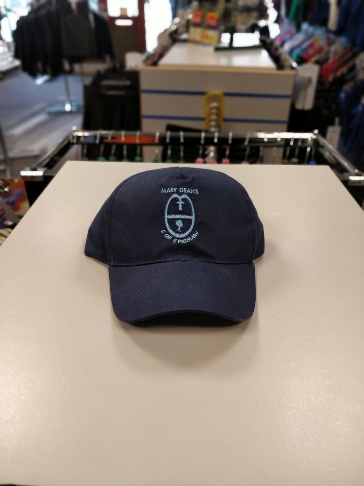 55cm cotton baseball cap. Embroidered for Mary Dean’s C-of-E Primary School.