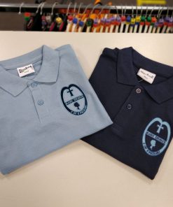 Three-button polo shirt. Embroidered for Mary Dean's C-of-E Primary School.
