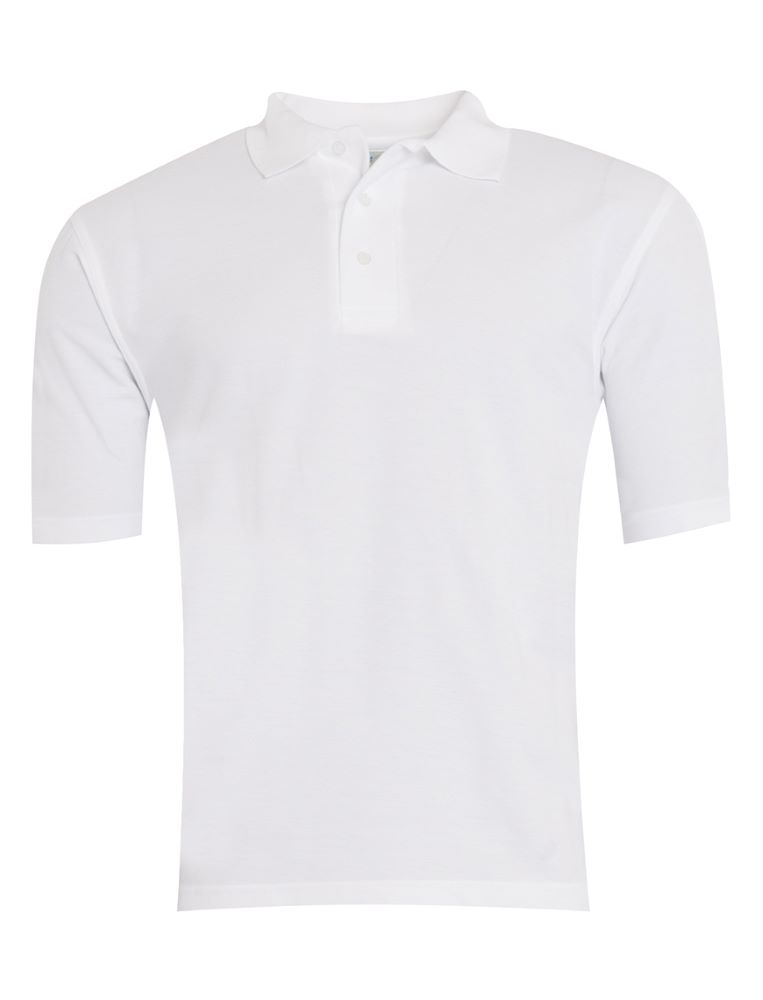 Classic white polo shirt.