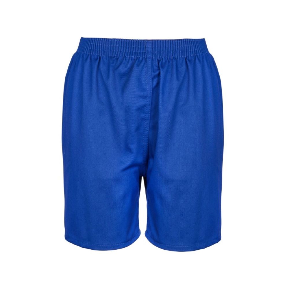 Royal blue poly-cotton PE shorts.