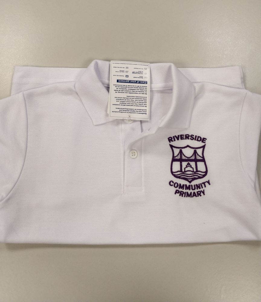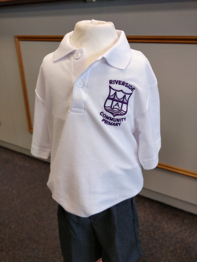 Three-button polo shirt. Embroidered for Riverside Primary School.