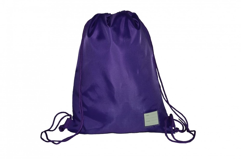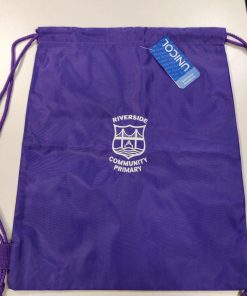 Drawstring PE bag. Ideal for swimwear and muddy kits. Embroidered for Riverside Primary School.
