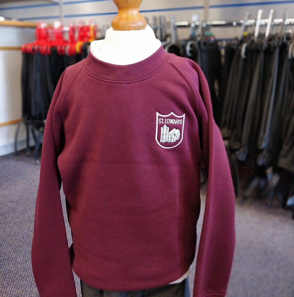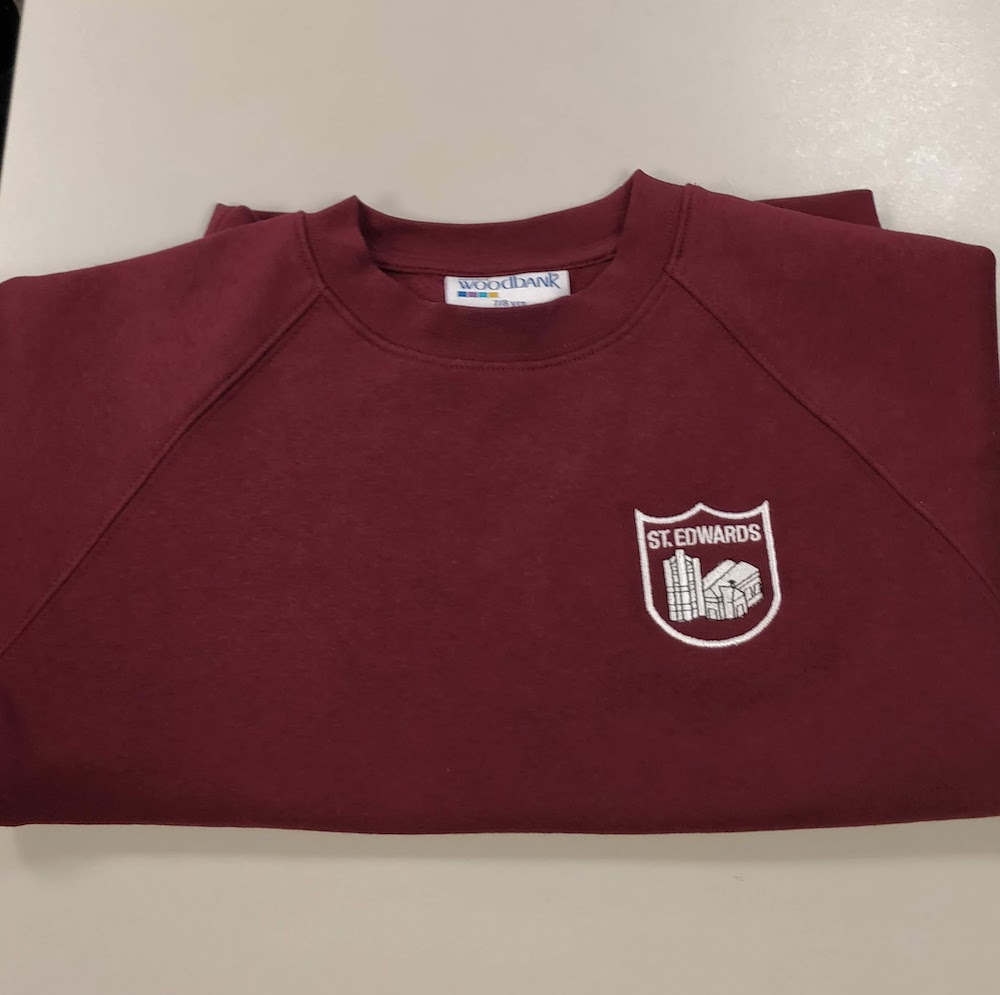 Crew-neck sweatshirt. Embroidered for St. Edward’s CofE Primary School.