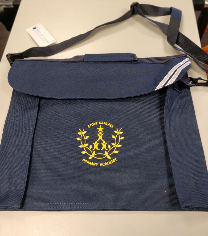 All-rounder junior school bag with removable shoulder strap. Embroidered for Stoke Damerel Primary Academy.