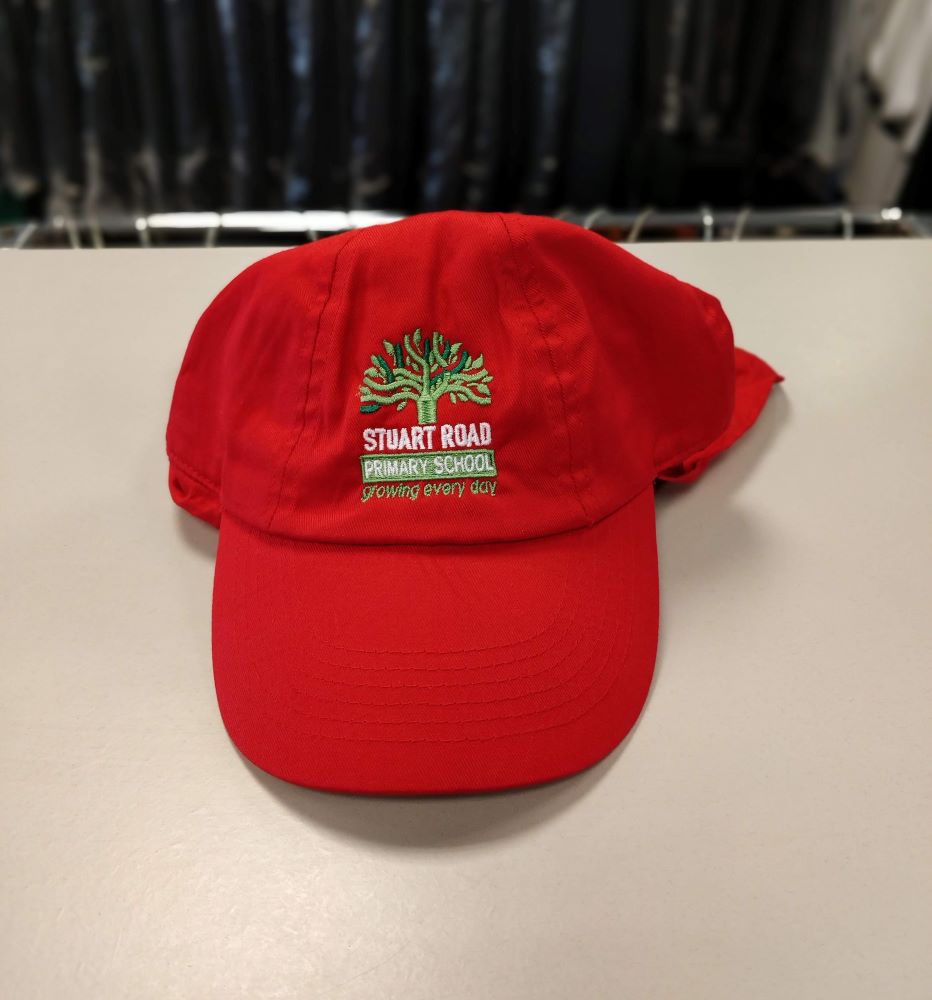 55cm cotton baseball/legionnaire’s cap. Embroidered for Stuart Road Primary Academy.