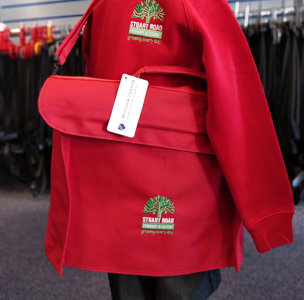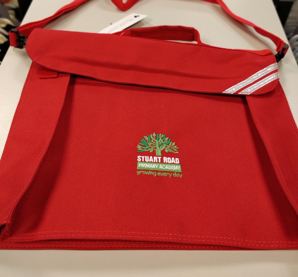 All-rounder junior school bag with removable shoulder strap. Embroidered for Stuart Road Primary Academy.