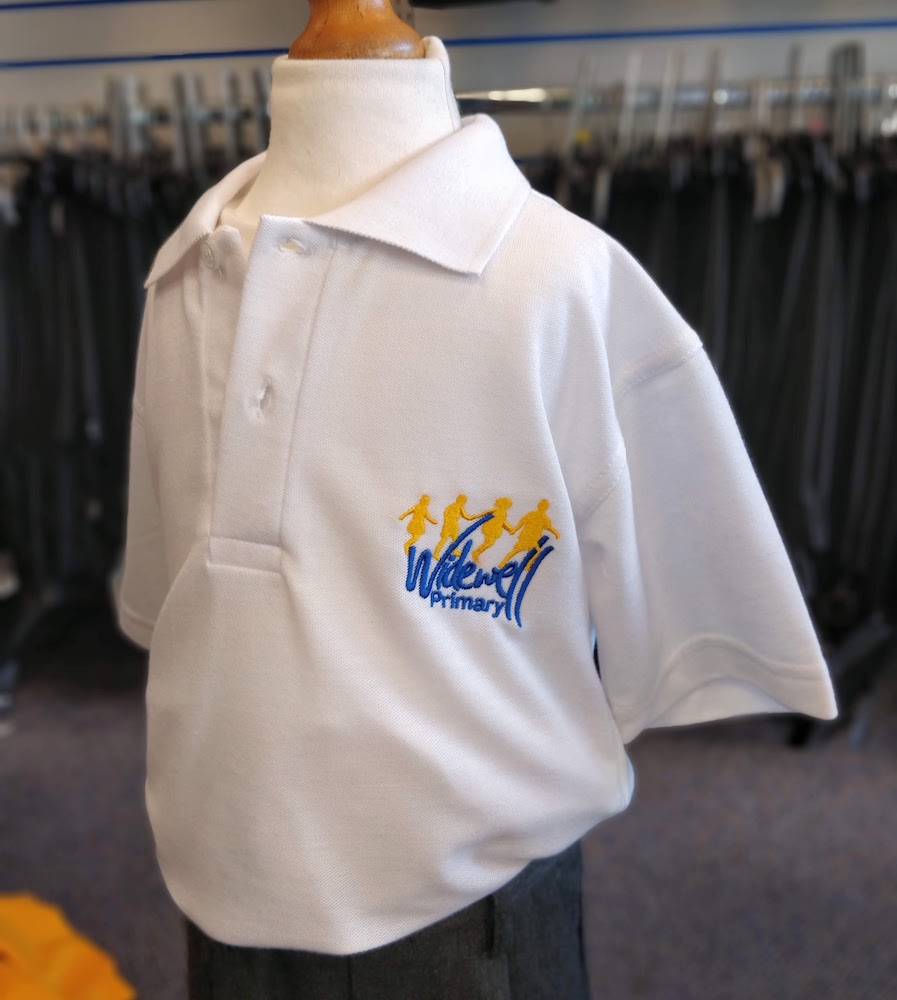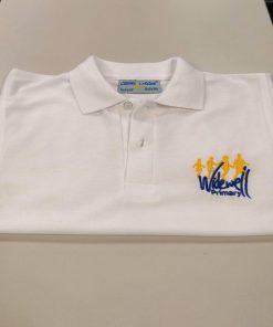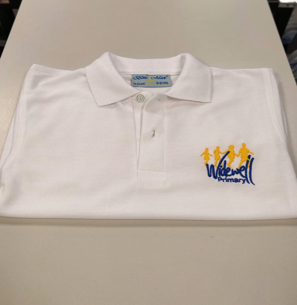 Three-button polo shirt. Embroidered for Widewell Primary Academy.