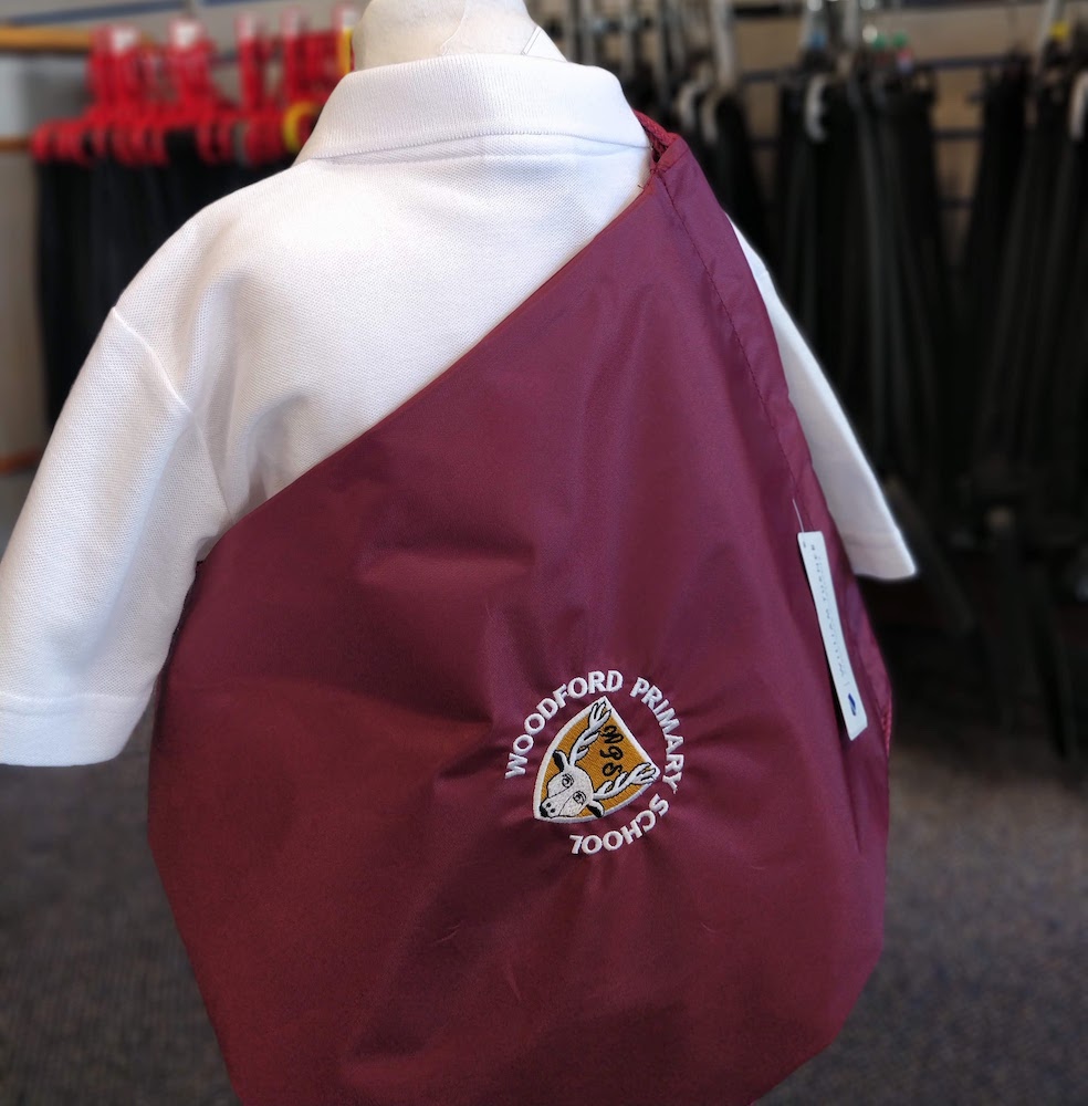 Sponge clean only.Drawstring PE bag. Ideal for swimwear and muddy kits. Embroidered for Woodford Primary School.
