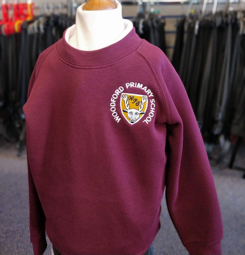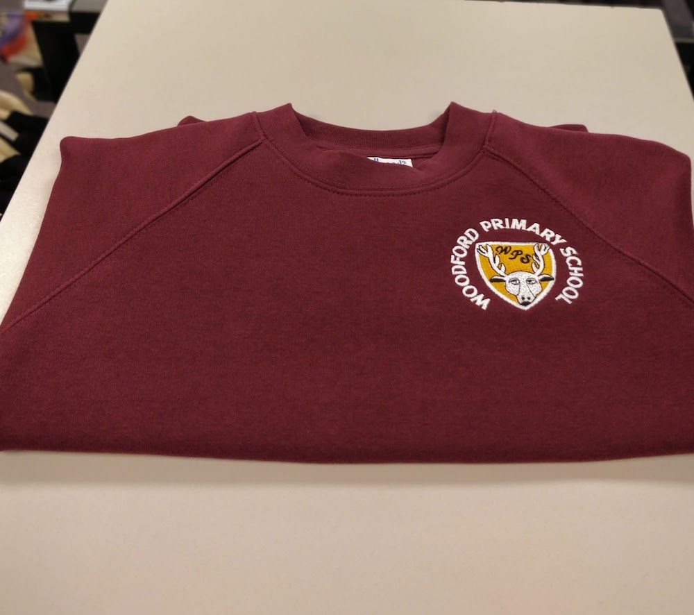 Crew-neck sweatshirt. Embroidered for Woodford Primary School.